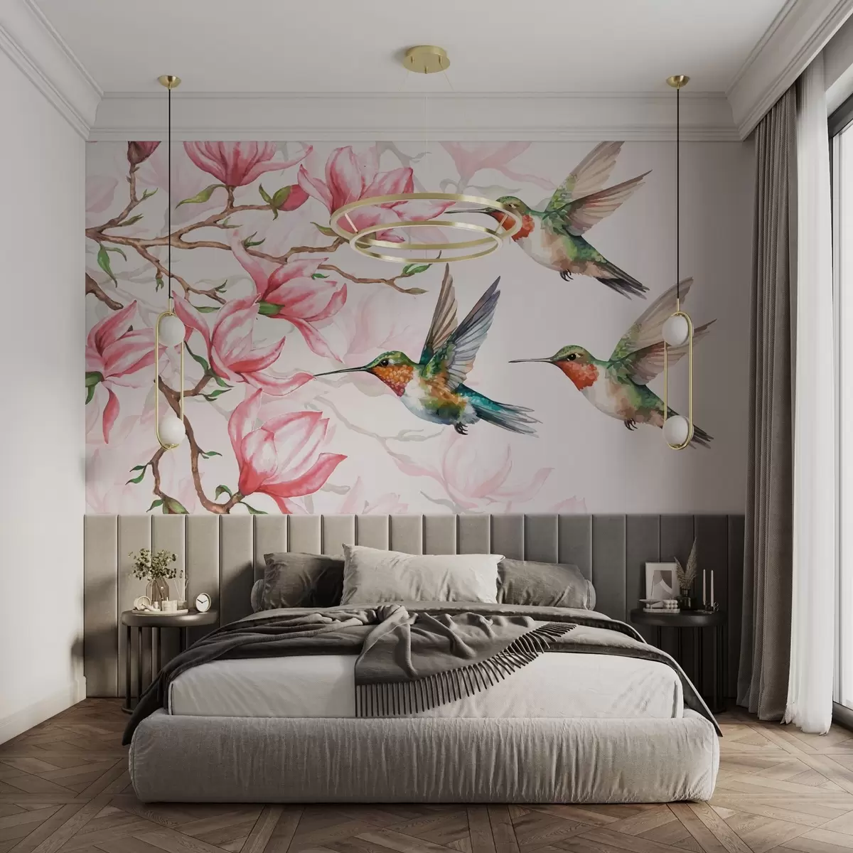 Fotomurales Magnolias en flor y colibríes Nr. w03104