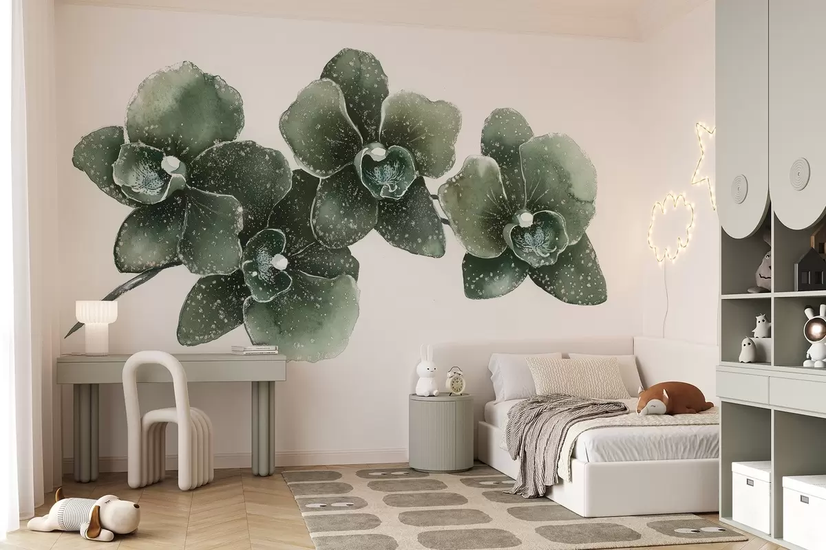 Fotomurales Rama de flor de Orhid, estilo acuarela, floral, colores verdes Nr. w03165v1