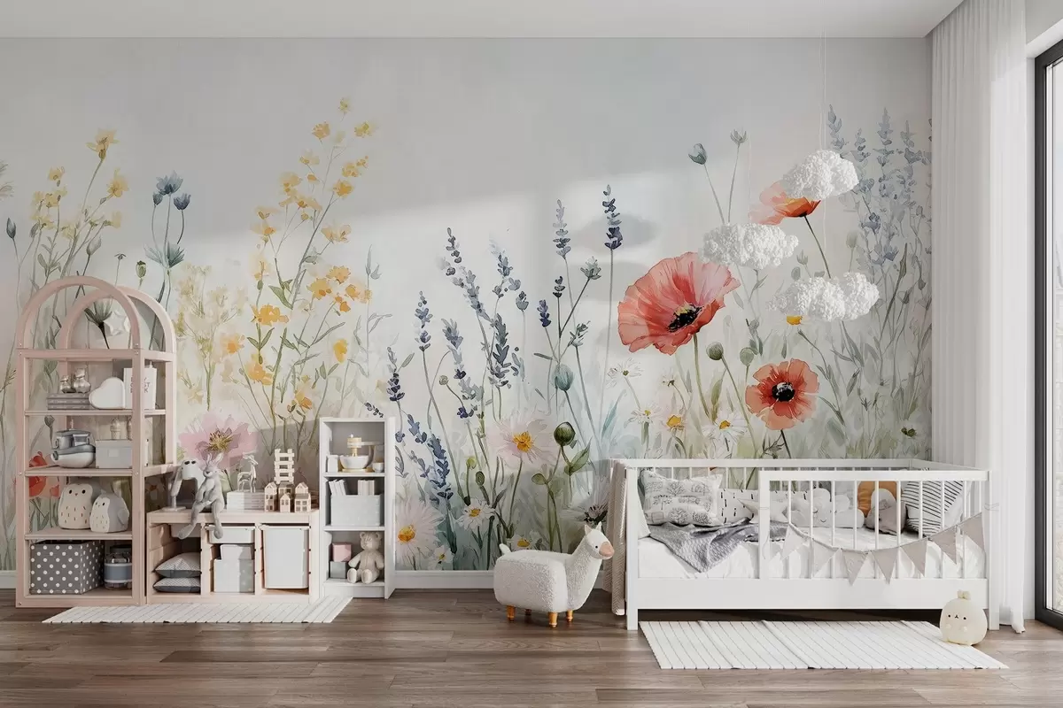 Fotomurales flores silvestres y amapolas en la técnica de los trazos Nr. w03281
