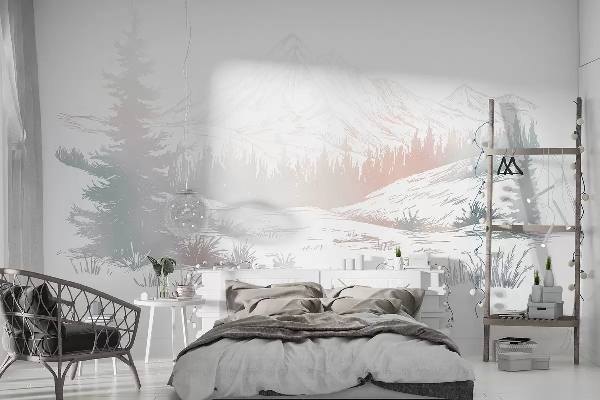 Fotomurales Paisaje de montaña con pinos, bosque, naturaleza, colorido Nr. w03344v4