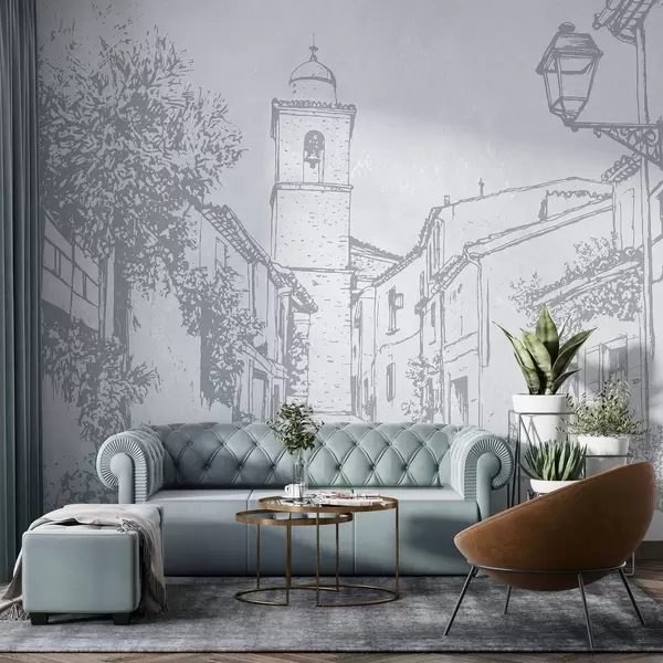 Fotomurales Calle de la ciudad, hermosa arquitectura, edificios, Mediterráneo, colores azules Nr. w03346v1
