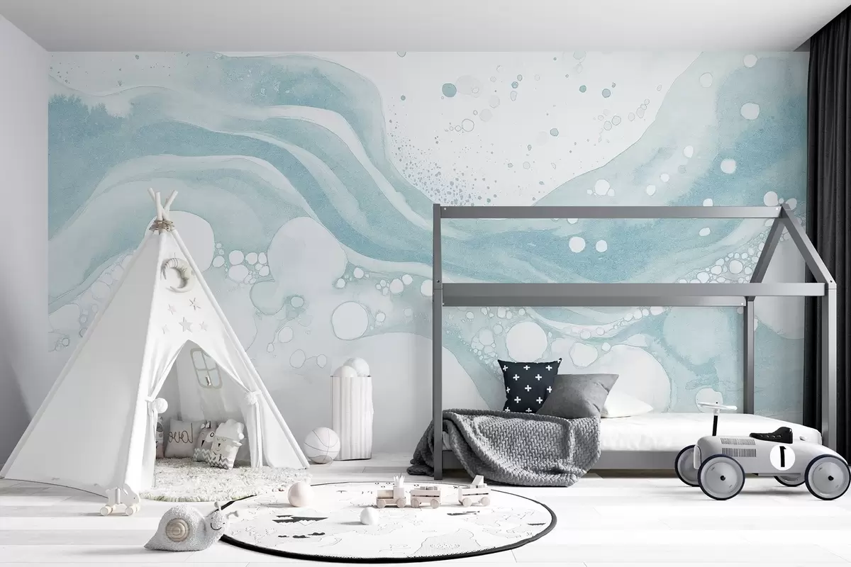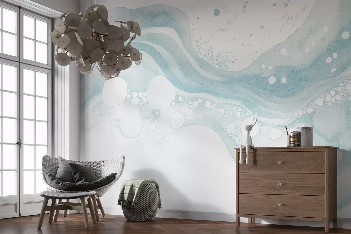 Fotomurales Dibujo de abstracción estilo acuarela, arte fluido, color azul Nr. w03403v1