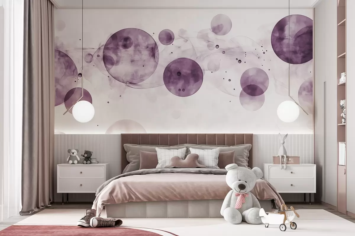 Fotomurales Círculos estilo acuarela, abstracción, etéreo, arte fluido, colores morados Nr. w03405v2