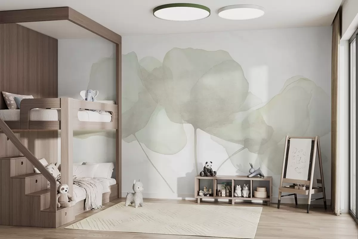 Fotomurales Hermosas flores, pastel suave, minimalismo, natural, rústico, beige y verde Nr. w03407