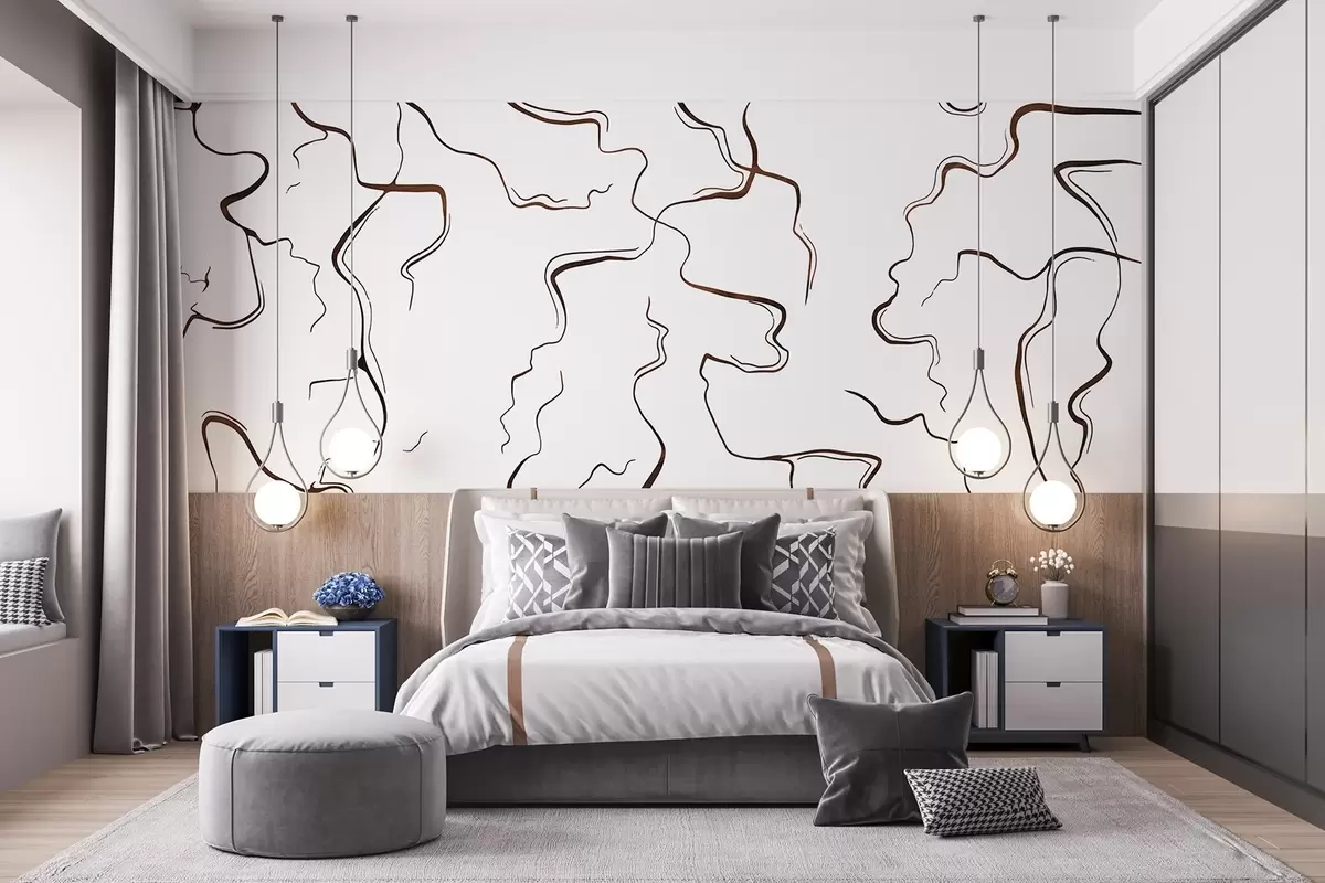 Fotomurales Líneas geométricas, estilo tinta, abstracción, colores marrones Nr. w03436v1