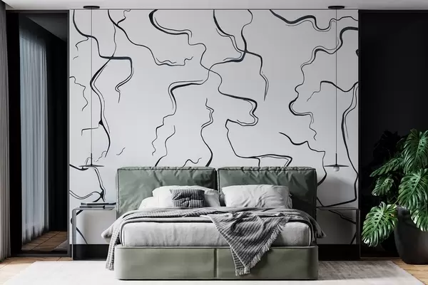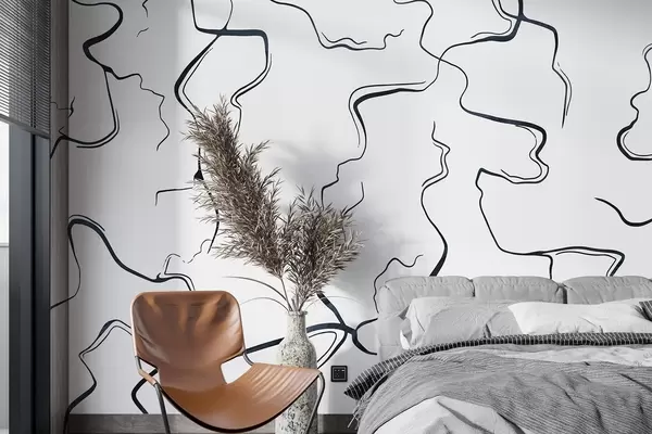 Fotomurales Líneas geométricas, estilo tinta, abstracción, colores grises Nr. w03436v2