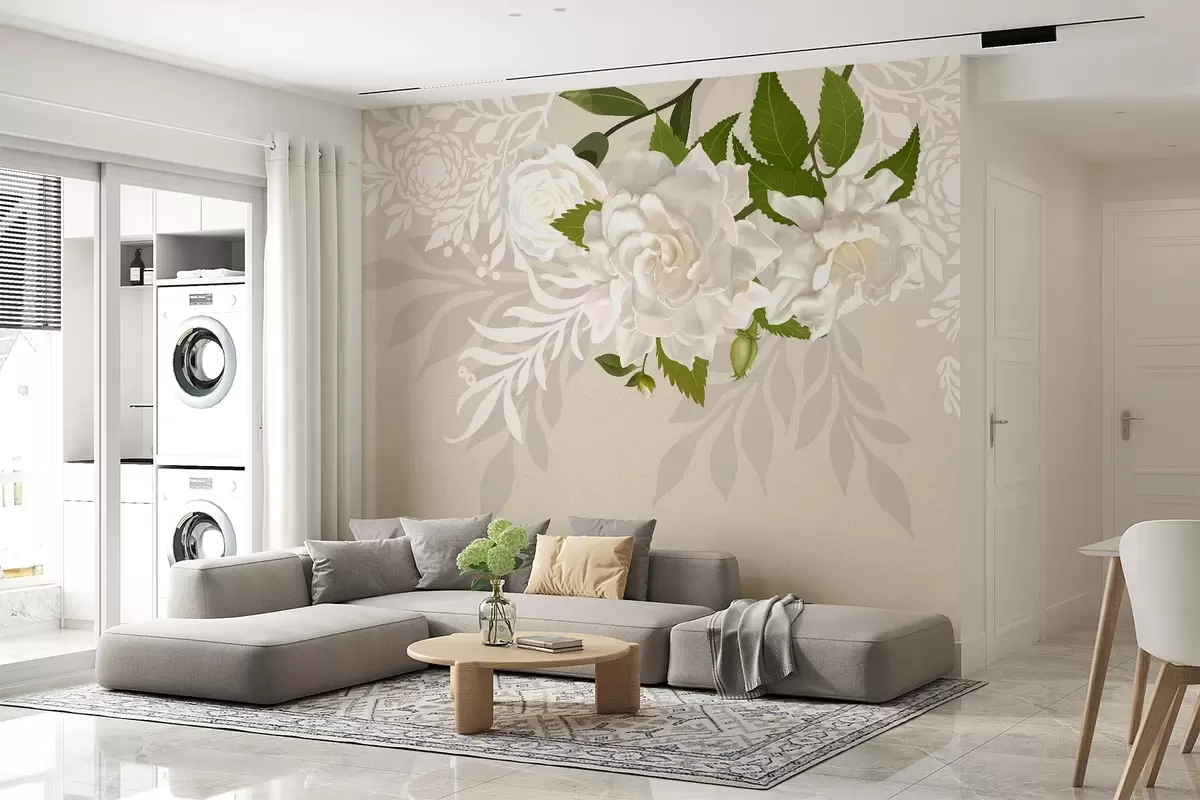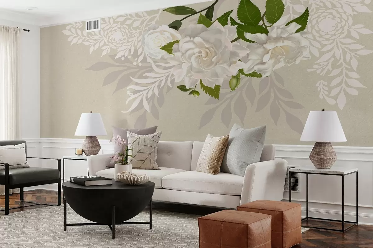 Fotomurales rosas blancas sobre fondo beige Nr. w03453