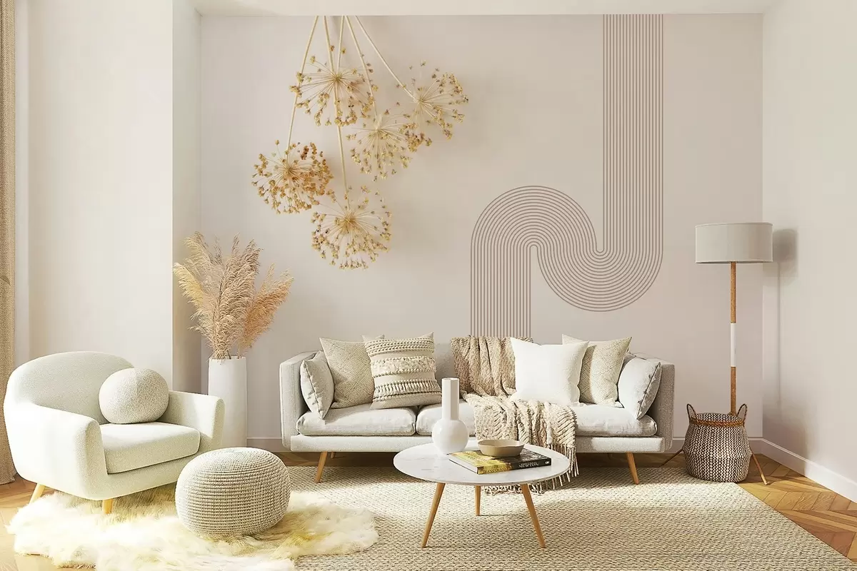 Fotomurales elegantes flores secas y líneas en tonos beige Nr. w03455