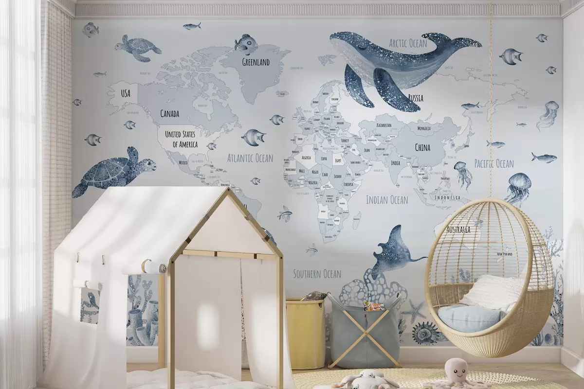 Fotomurales Mundo submarino con mapamundi Nr. w03526v3