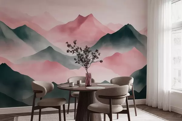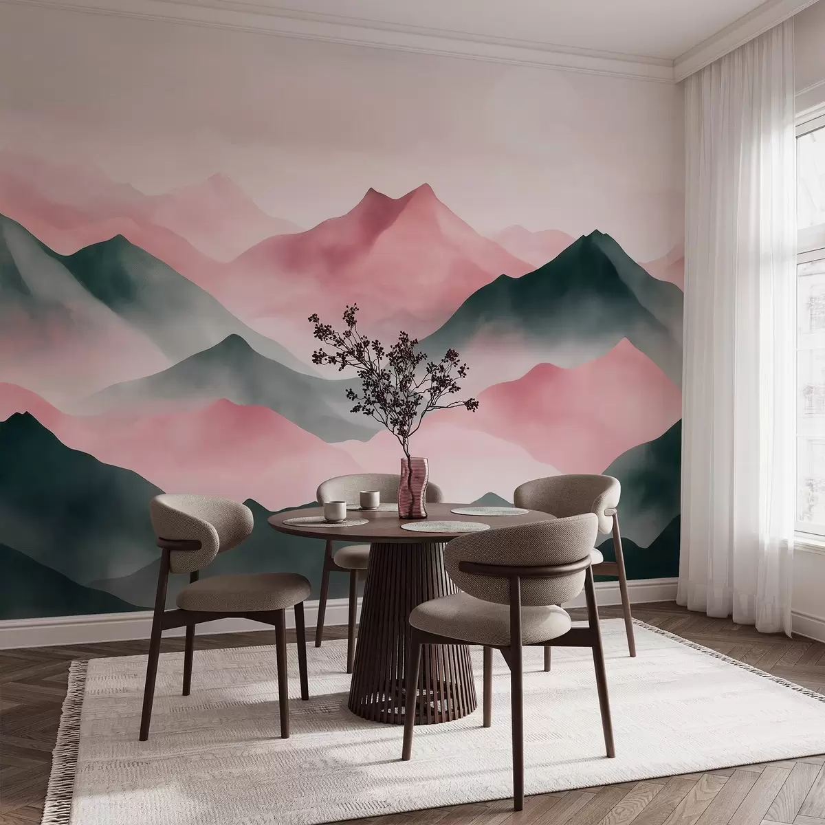 Fotomurales Paisajes de montaña, estilo acuarela, niebla, rosa y gris Nr. w03548v1