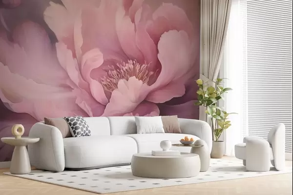 Fotomurales Flor de peonía rosa pastel sobre fondo de niebla Nr. w03600