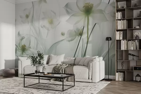 Fotomurales Flores de primavera en la niebla en tonos verdes Nr. w03646