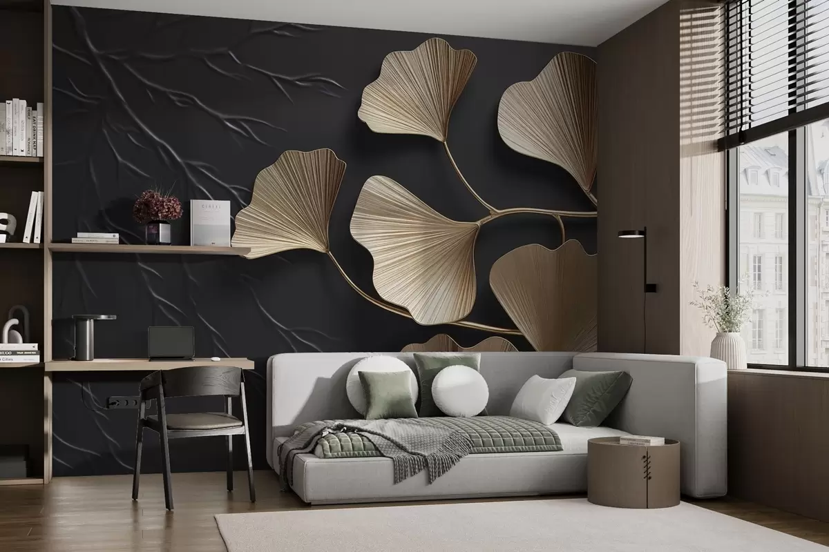 Fotomurales Follaje volumétrico en una pared oscura Nr. w03650v1