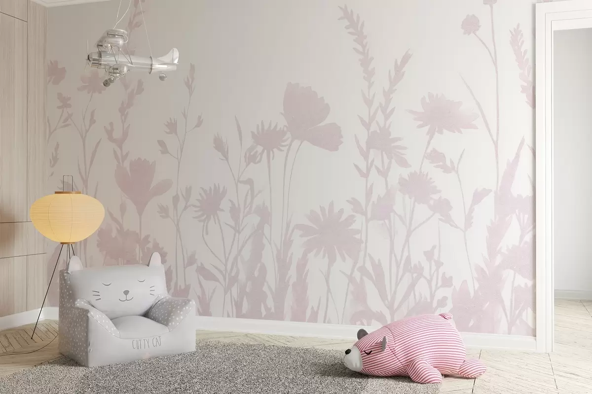 Fotomurales Pradera de verano, rústico, flores, paleta de color rosa Nr. w03670v2