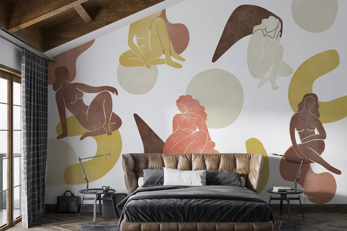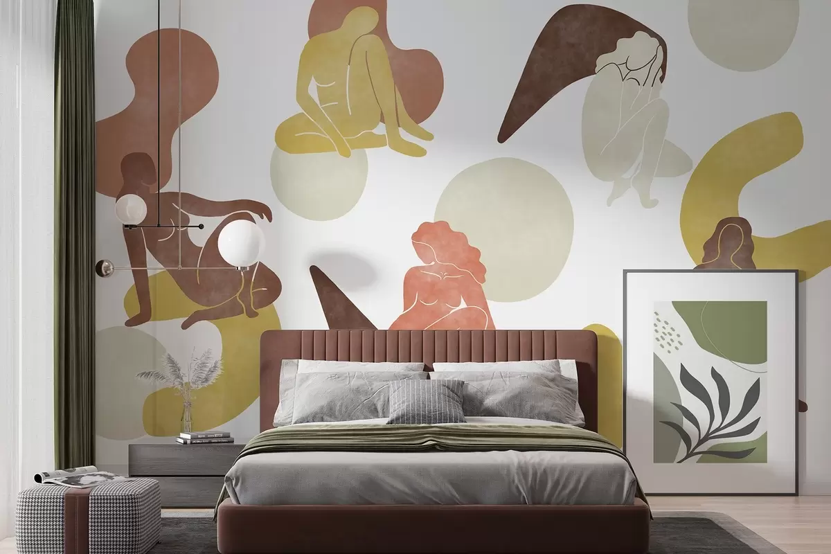 Fotomurales Abstracciones geométricas con siluetas femeninas, estilo boho, marrón, beige, amarillo Nr. w03753v2