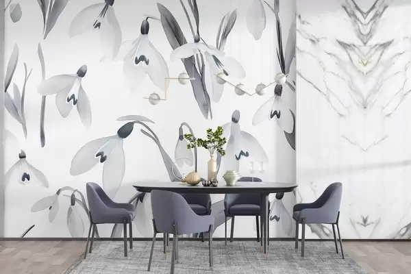 Fotomurales Snowdrops flores en estilo acuarela, colores grises Nr. w03754v1