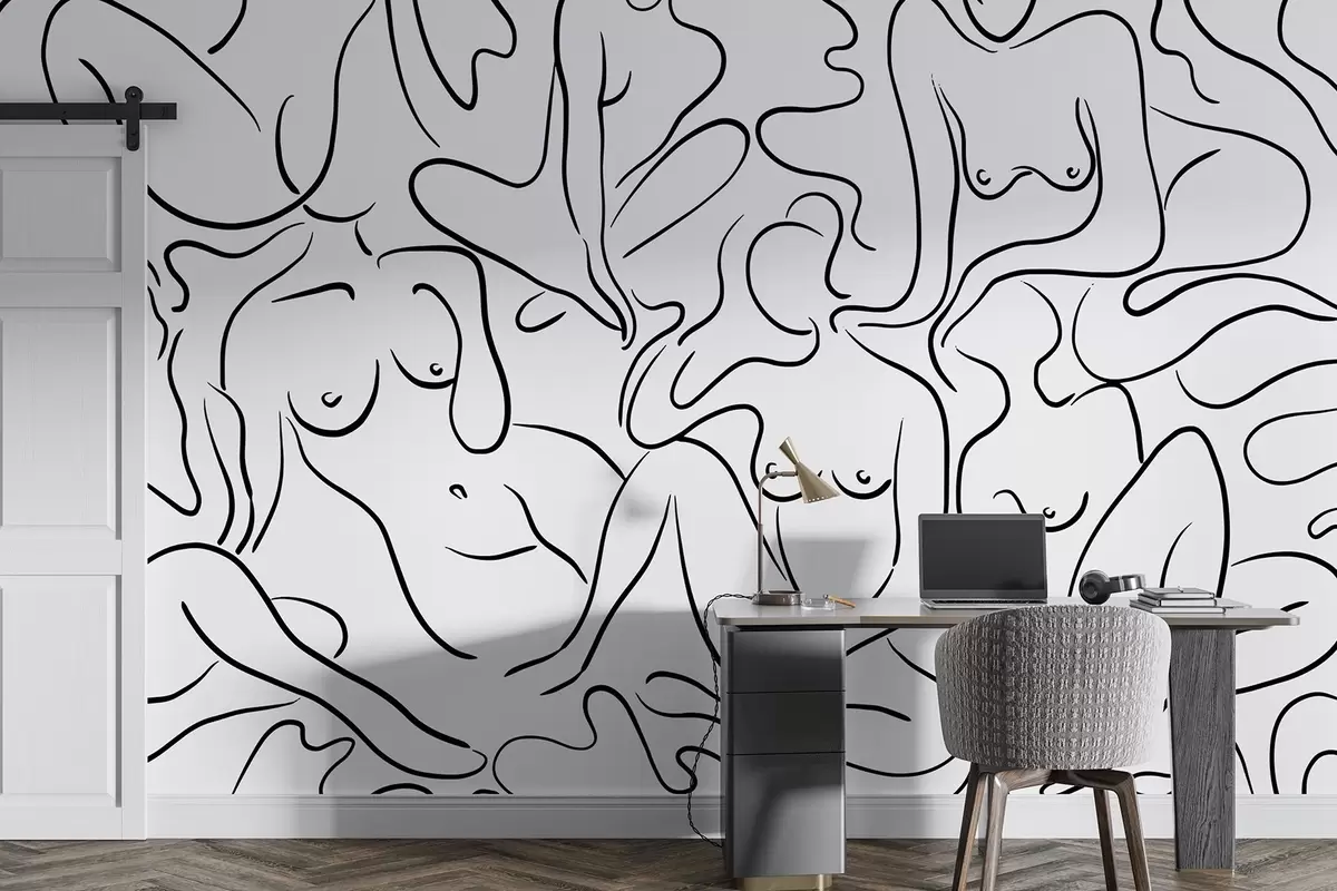 Fotomurales Dibujo lineal siluetas de cuerpos de mujeres, abstracción, color negro Nr. w03755
