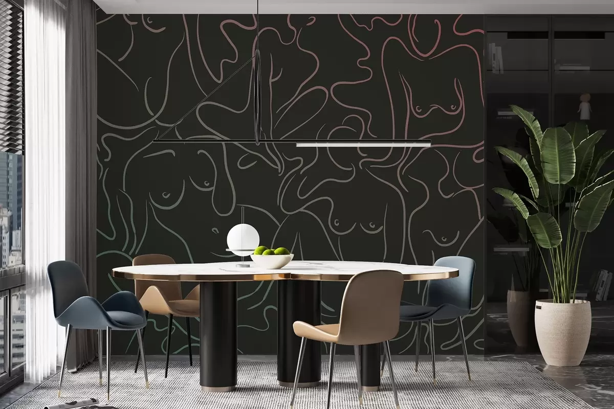 Fotomurales Dibujo lineal siluetas anatómicas, abstracción, fondo oscuro Nr. w03755v2