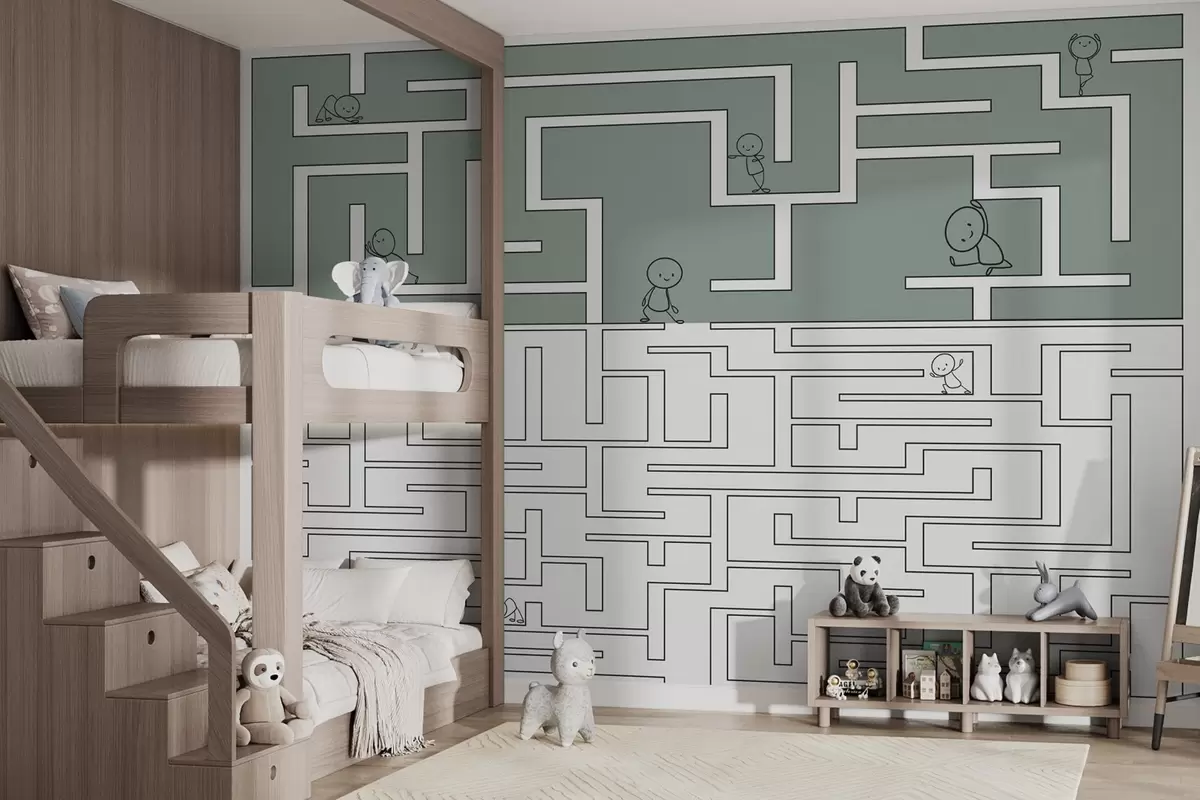 Fotomurales Laberinto en verde y blanco Nr. w03873v3