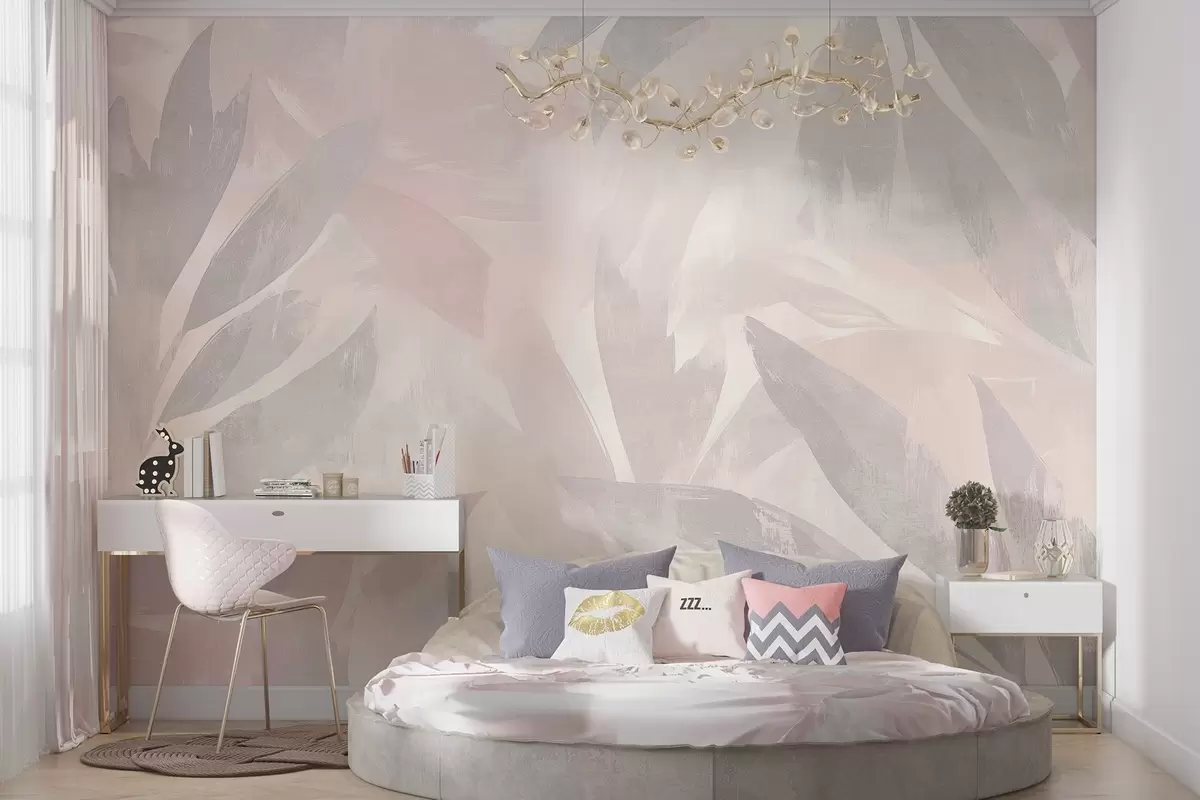 Fotomurales Hojas tropicales, florales, palmeras, estilo pastel, colores rosa y beige Nr. w03881