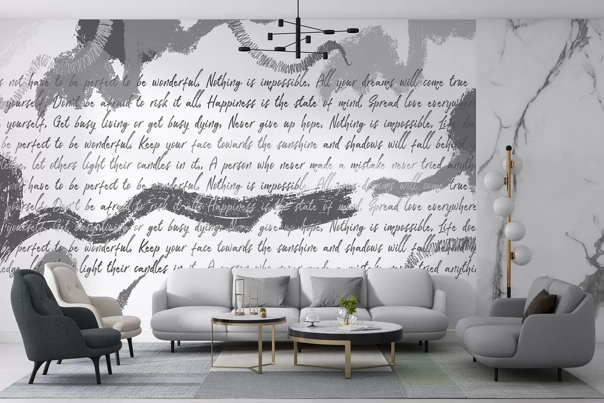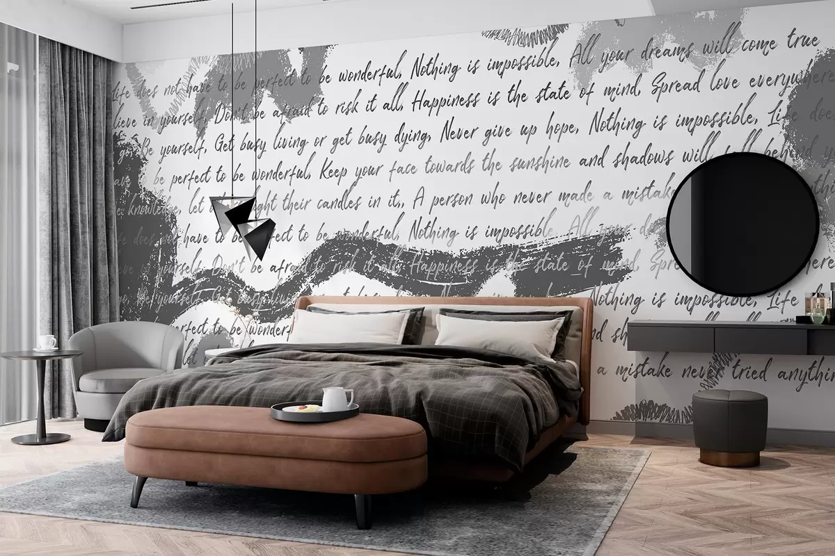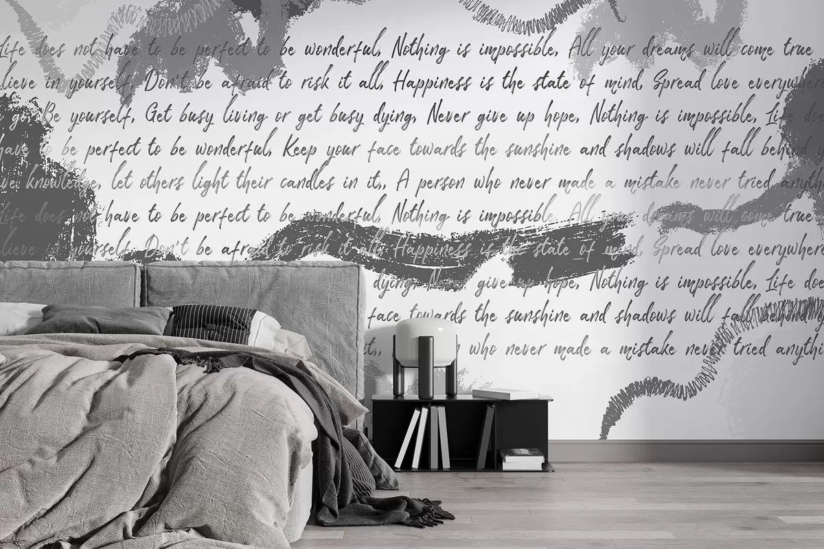 Fotomurales Diseño con citas inspiradoras, abstracción, colores grises Nr. w03909v4