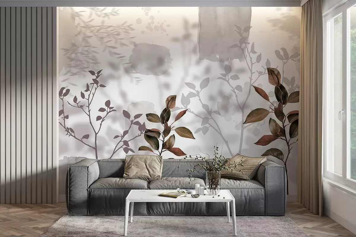 Fotomurales Hojas de limonero, ramas de arbol sombras, naturaleza, acuarela Nr. w03910