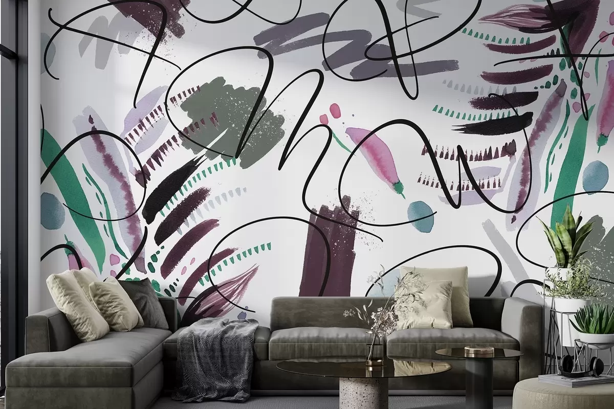 Fotomurales Letras de tinta, caligrafía, pinceladas, colores pastel, abstracción Nr. w03912v1