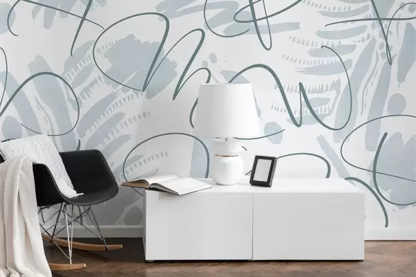 Fotomurales Abstracción caligráfica con letras, pinceladas, color azul Nr. w03913v1