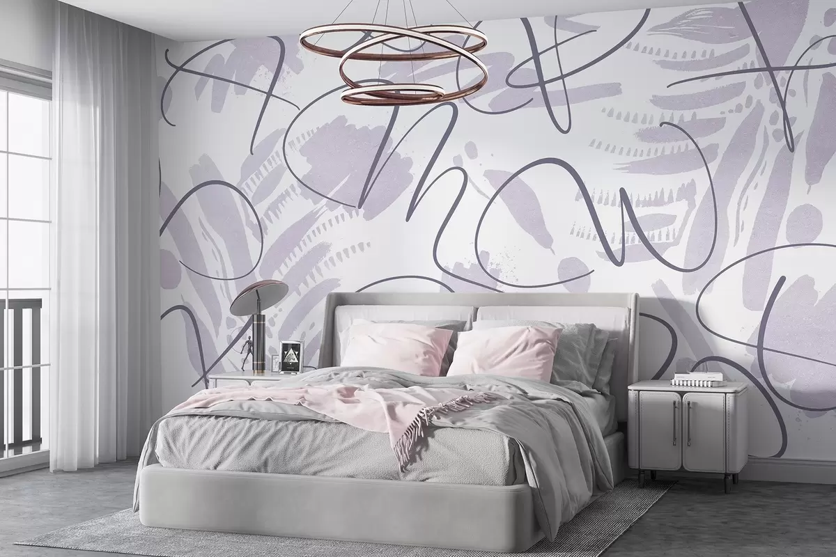 Fotomurales Abstracción caligráfica con letras, pinceladas, color púrpura Nr. w03913v2