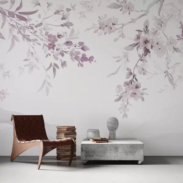 Fotomurales Ramas floridas, imitación de acuarela, tonos púrpura-rosa Nr. w03935v1