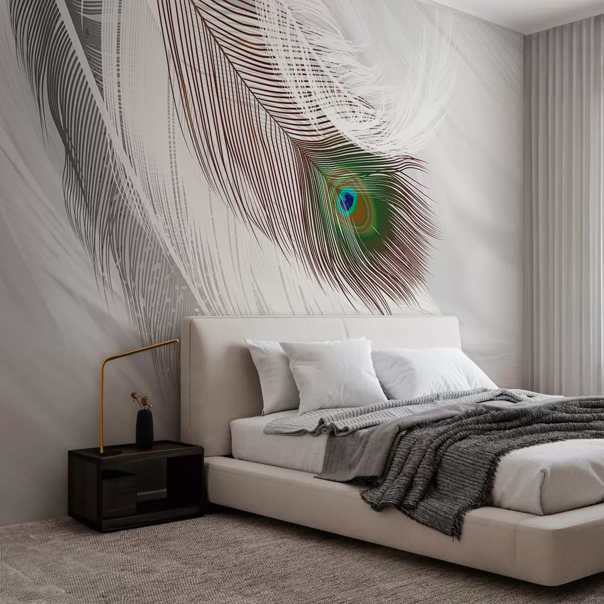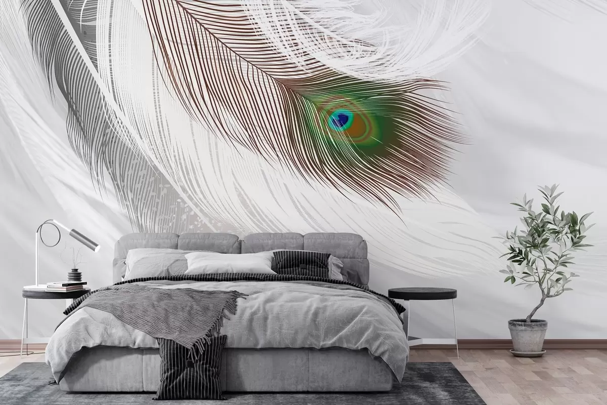Fotomurales una gran pluma de pavo real entre las plumas Nr. w03961