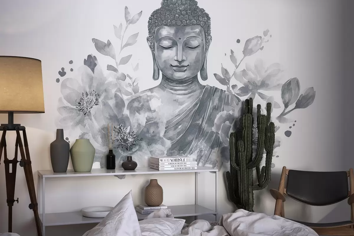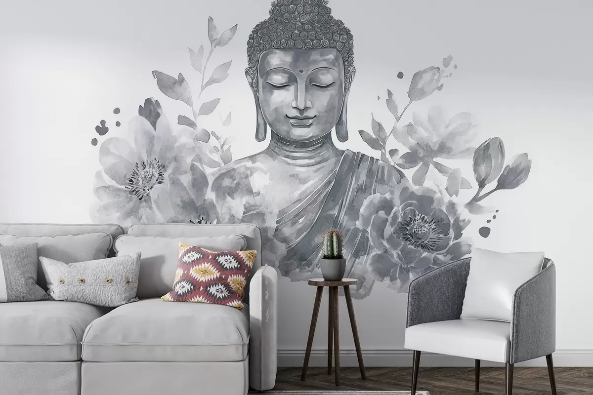 Fotomurales Buda de acuarela con flores, espiritual, paleta de colores grises Nr. w04005v1