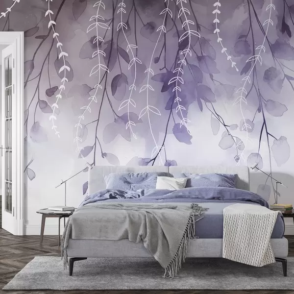 Fotomurales Ramas con hojas en estilo acuarela, colores morados naturales Nr. w04007v2