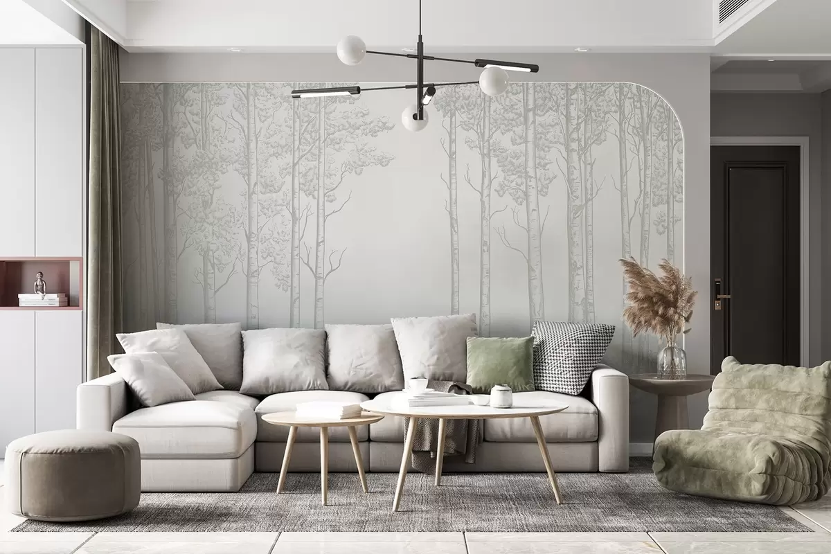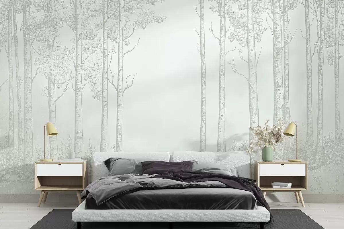 Fotomurales Bosque con abedules, minimalismo, naturaleza, paleta de colores verdes Nr. w04009v1