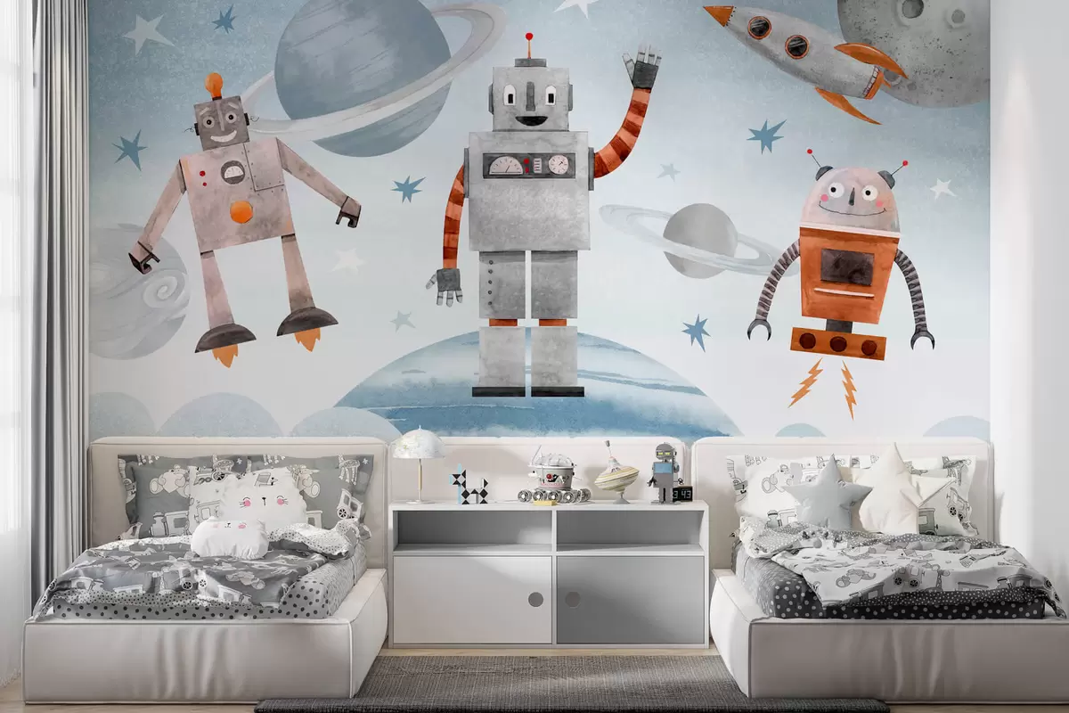 Fotomurales Robots en el espacio en estilo acuarela Nr. w04016