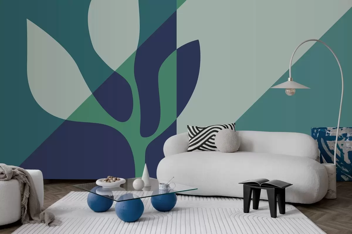 Fotomurales planta gráfico abstracto sobre el fondo de la geometría en tonos azules Nr. w04028v1