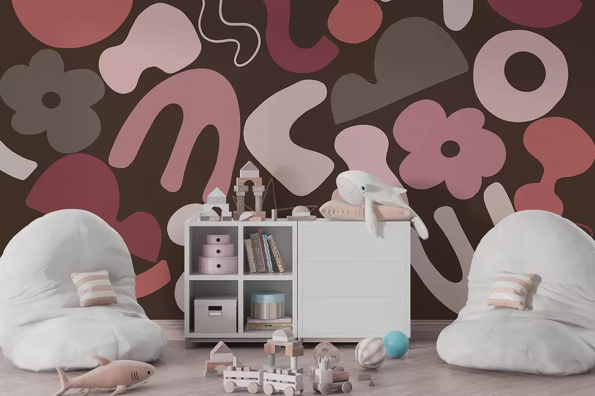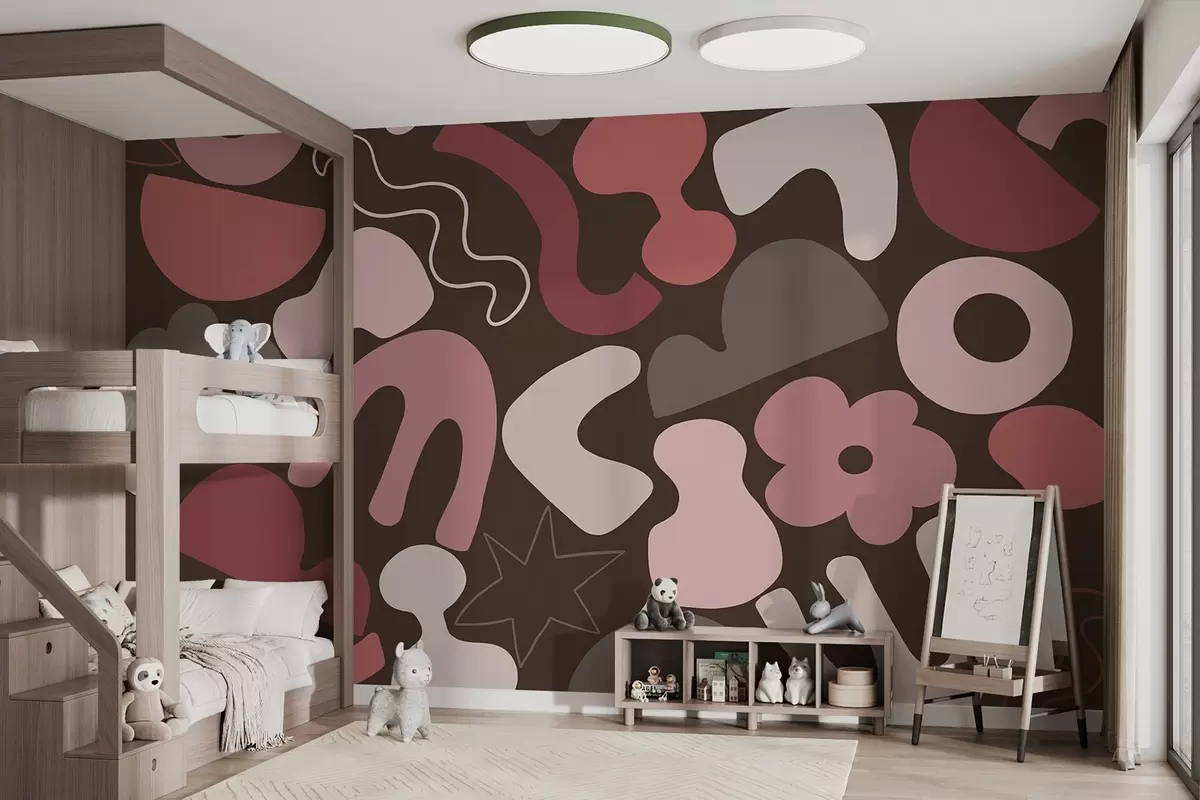 Fotomurales Figuras geométricas, juvenil, abstracción, fondo burdeos oscuro Nr. w04067
