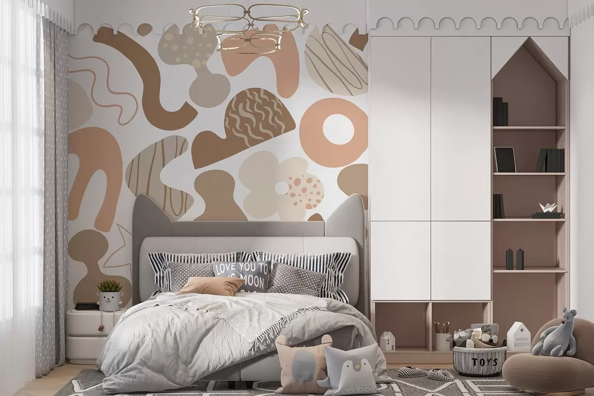 Fotomurales Dibujo de figuras geométricas con garabatos, juvenil, paleta de colores beige Nr. w04068