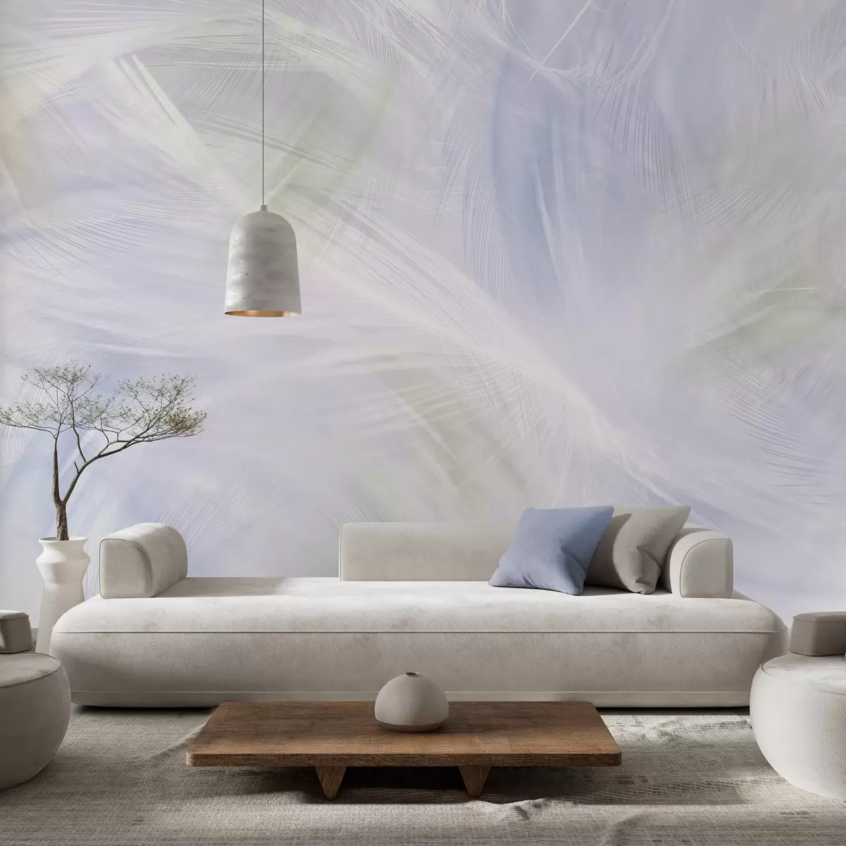 Fotomurales plumas vaporosas en tonos beige y azul Nr. w04071v1