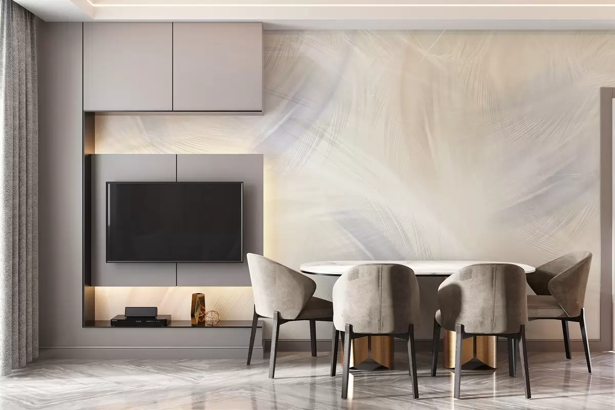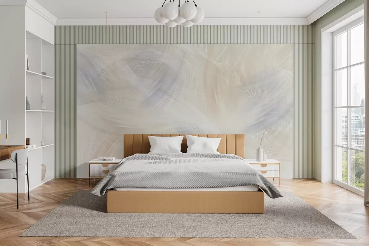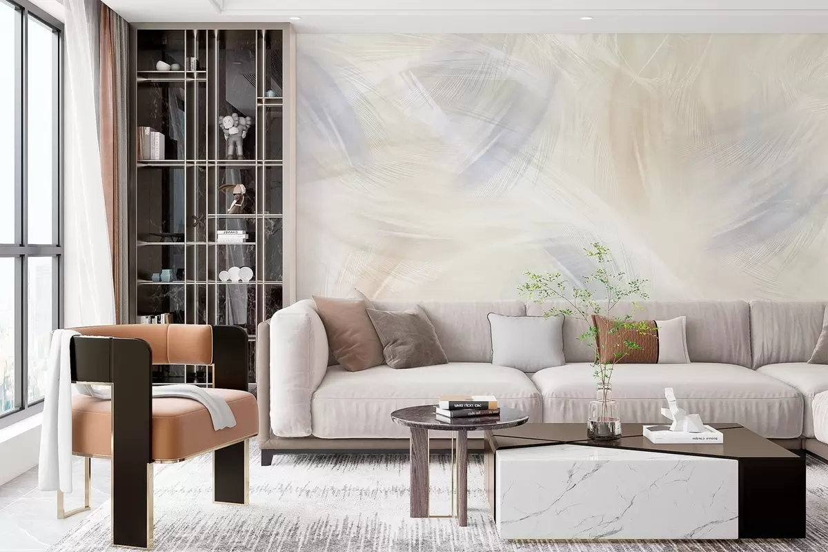 Fotomurales plumas vaporosas en tonos azules y beige Nr. w04071v2