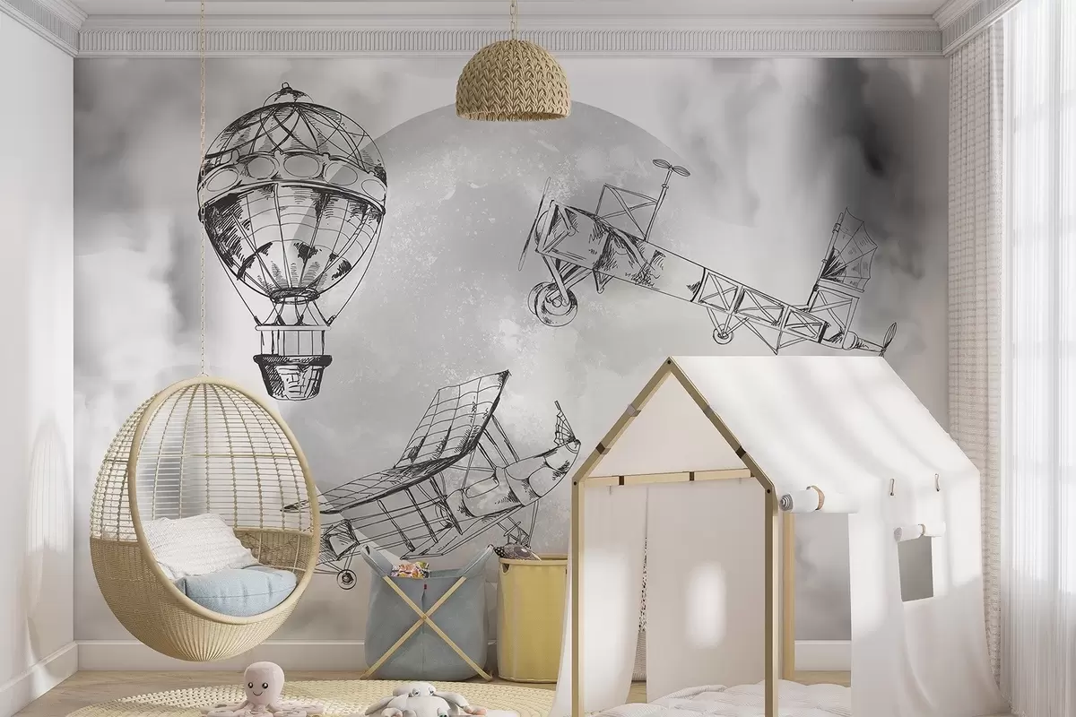 Fotomurales Aviones retro sobre el fondo de la luna y las nubes Nr. w04085