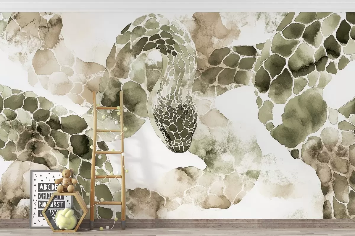 Fotomurales Silueta de serpiente, estilo acuarela, colores oliva Nr. w04113v3