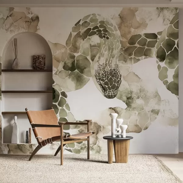 Fotomurales Silueta de serpiente, estilo acuarela, colores oliva Nr. w04113v3