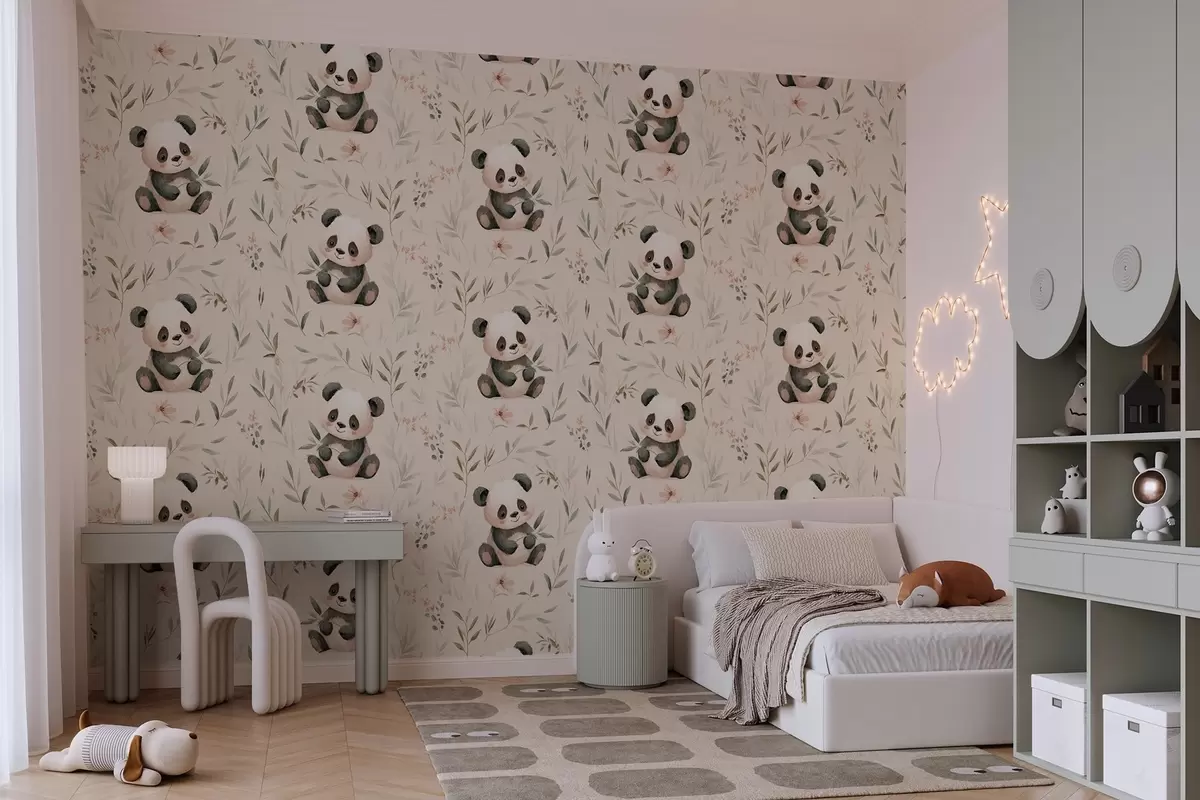 Fotomurales simpáticos bebés pandas entre las plantas Nr. w04170