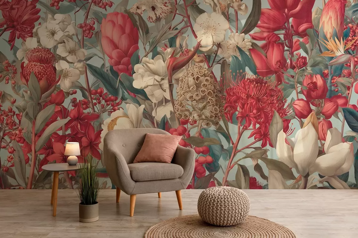 Fotomurales flores tropicales con textura sobre fondo azul Nr. w04209