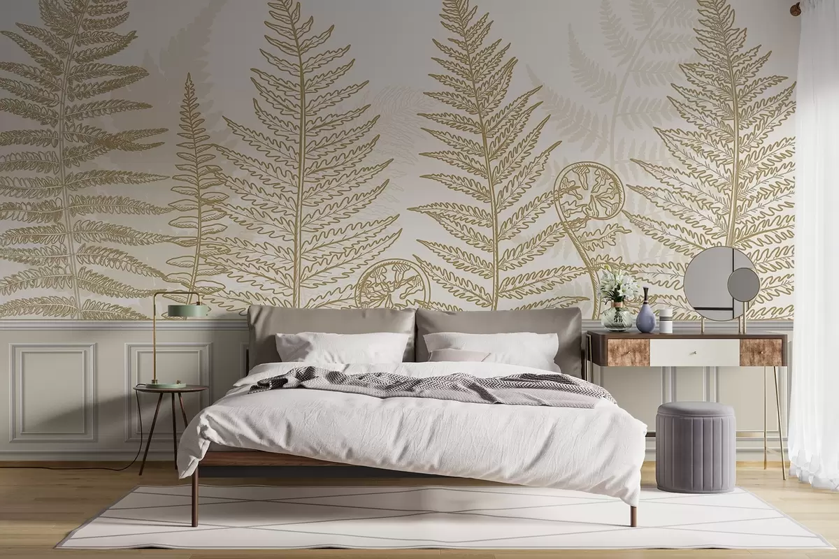 Fotomurales hojas, plantas, helecho, luz, botánico, gráfico Nr. w04239