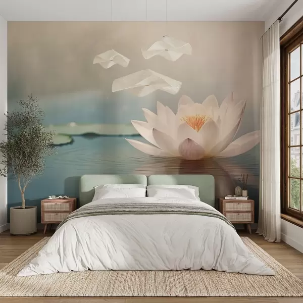 Fotomurales Flor de loto blanca sobre el agua Nr. w04272