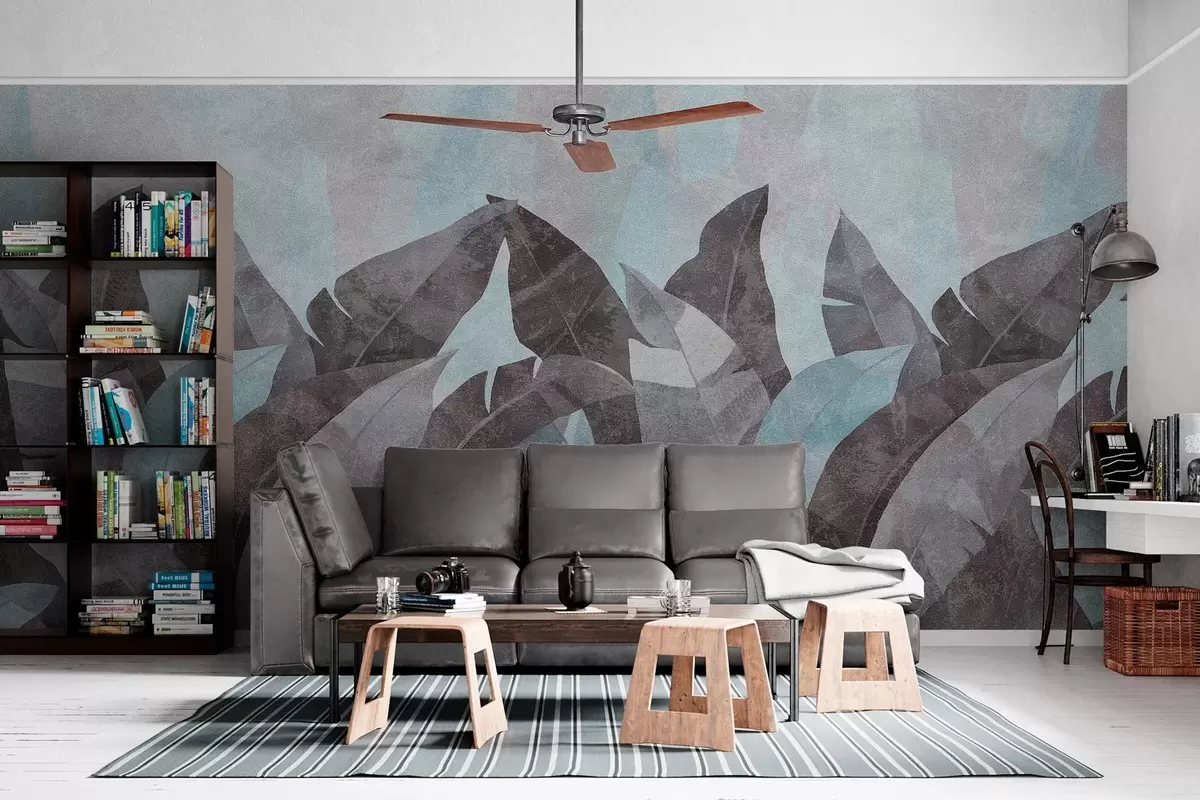 Fotomurales hojas de plátano texturizadas en tonos azules y grises Nr. w04285v2