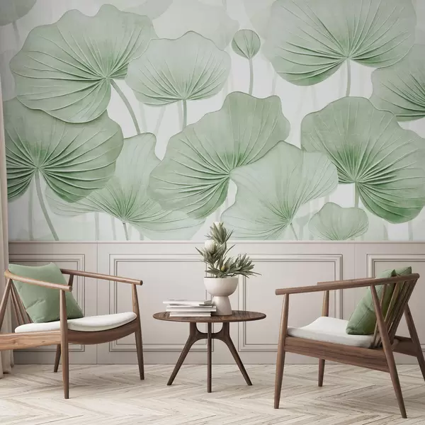 Fotomurales Hojas de loto con imitación de textura envejecida Nr. w04412