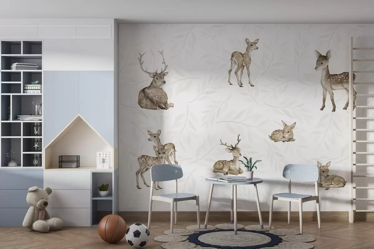 Fotomurales Lindos cervatillos sobre un fondo claro con ramitas Nr. w04461